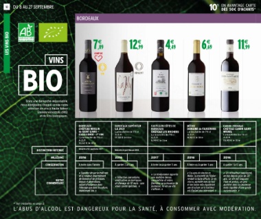 et de vins biologiques. La bouteille de 75 cl 17,32 € le litre A.O.P. 8,92 € le litre A.O.P.
