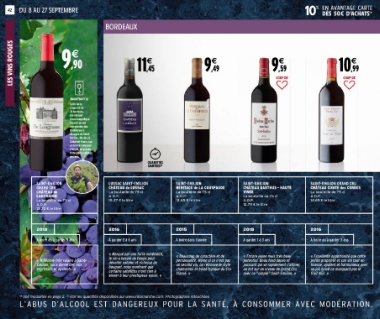 LES VINS ROUGES42 DU 8 AU 27 SEPTEMBRE BORDEAUX 9€ % EN AVANTAGE CARTE