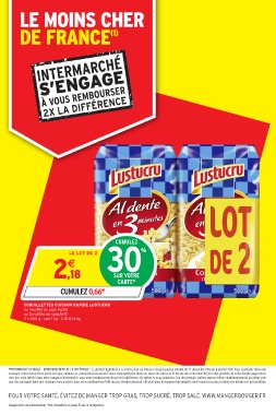 cher que celui acheté dans votre magasin Intermarché, nous vous remboursons deux fois la différence. De même, si vous constatez l’un des produits (même saveur, même conditionnement) au même prix