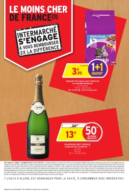 une enseigne concurrente, nous vous remboursons 10% du prix. Remboursement effectué dans le magasin Intermarché dans lequel vous avez réalisé vos achats sur présentation de la preuve d’un prix plus bas ou