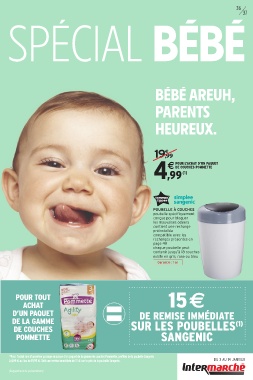 (1)Pour l’achat lors d’un même passage en caisse d’un paquet de la gamme de couches Pommette, profitez de la poubelle Sangenic Du 3 au 14 janvier