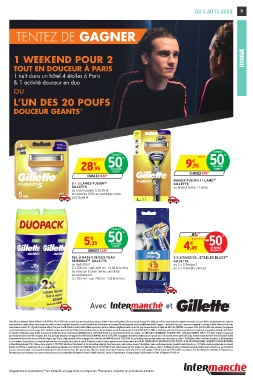 visite privée en voiture 2 CV – 20 poufs d’extérieur Fatboy. Pour jouer, il suffit d’acheter un des produits Gillette en promotion parmi les références éligibles présentes sur le tract, puis d’envoyer depuis son mobile par SMS « GILLETTEPARIS » au numéro 32321 (coût d’un SMS selon opérateur). Les gagnants