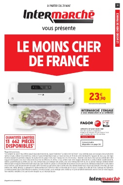ventes en ligne, soldeurs et promotions), située en France métropolitaine (dans un rayon de moins de 15 km de votre Intermarché), l’appareil de mise sous vide Fagor
