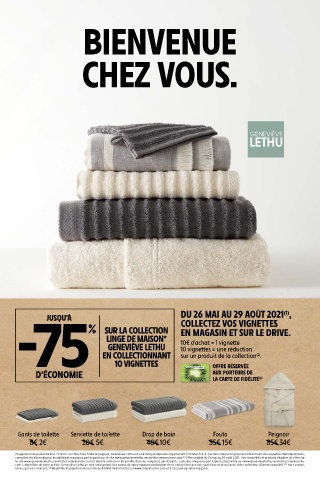 consultez les informations, modalités et magasins participants sur le site www.genevievelethu.serviettes.intermarche.com (1) Offre valable du 26 mai au 29 août 2021. Voir modalités et produits éligibles à l’offre sur