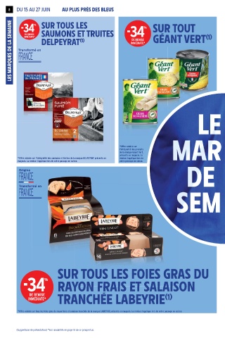 (1) Offre valable sur tous les foies gras du rayon frais et salaison tranchée de la marque LABEYRIE présents en magasin. La remise s'applique lors de votre passage en caisse.