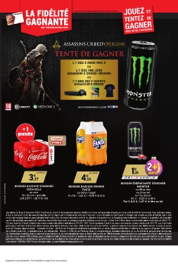 100 Jeux Assassin’s Creed : Origins d’une valeur commerciale unitaire indicative de 75 € TTC ; 200 T-Shirts Assassin’s Creed d’une valeur commerciale unitaire indicative de 40 € TTC. Jeu limité à une