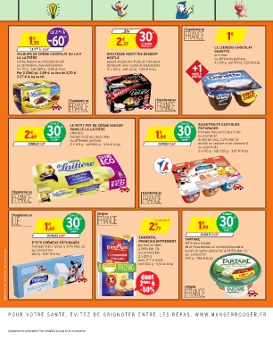 240 g - 6,67 € le kg dont 2ème à -50% au lait de vache pasteurisé à 34,5% Mat. Gr.
