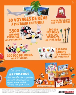de 3,50 €, 3 500 000 sachets de 4 tattoos les P’tits Prods d’une valeur commerciale unitaire indicative de 2,50 €. Les TICKETS du jeu gagnants seront valables du 7 mars au 16 avril 2017 dans le magasin DU 21 AU 26 MARS