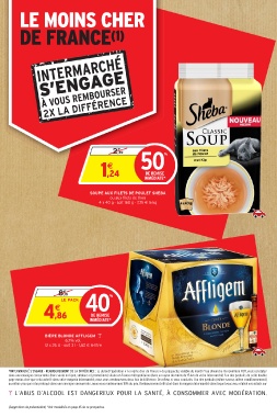 page moins cher que celui acheté dans votre magasin Intermarché, nous vous remboursons deux fois la différence. De même, si vous constatez l’un des produits (même saveur, même conditionnement)