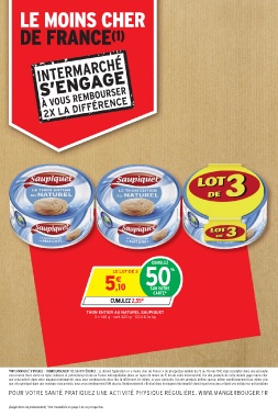 (1)INTERMARCHÉ S’ENGAGE - REMBOURSEMENT DE LA DIFFÉRENCE : si, durant l’opération « Le moins cher de France » du prospectus valable du 23 au 28 mai 2017, vous constatez dans une enseigne