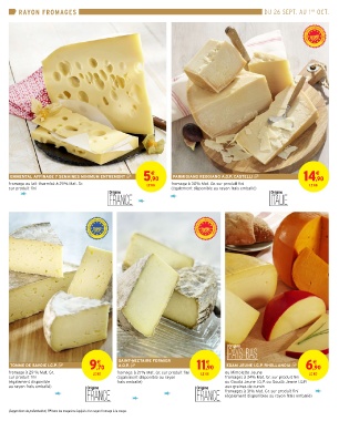 RAYON FROMAGES DU 26 SEPT. AU 1ER OCT.