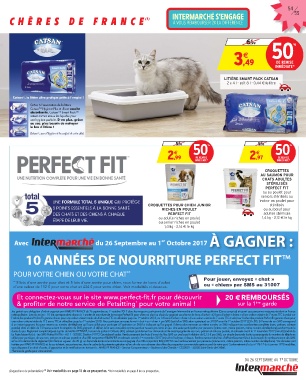 métropolitaine. Lots mis en jeu : 10 lots correspondant chacun à 1 année de nourriture de la marque Perfect Fit pour chien ou chat au choix du gagnant sous forme de bons d’achat : 62 bons d’achat « chiens » d’une valeur unitaire de 7 euros TTC à valoir sur