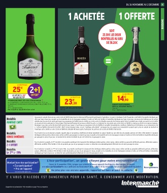 saveurs, différentes variétés). Offre limitée à 3 lots de produits, par jour et par passage en caisse, excepté sur les bouteilles de vin et champagne vendues à l’unité, où l’offre est limitée à 6 bouteilles