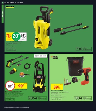 Pression max 165 bars, débit 5,5L/min. DISPONIBLES VISSEUSE SANS FIL+ OUTILLAGE A MAIN DISPONIBLES
